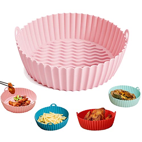 Air Fryer Silicone Baking Tray, 7.5/8.5 inch Air Fryer Silicone Pot, [Upgraded] Food Safe Air Fryers Oven Accessories (X Large - Pink [8.5''])