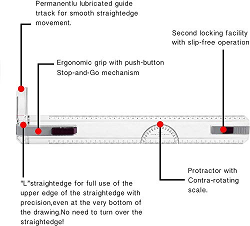 Frylr Lavagna da Disegno Professionale, Formato A3 Multi-Funzione Tavolo da Disegno Movimento Parallelo e Regolabile Angolo righelli Scuola cancelleria 50 x 36,5 cm