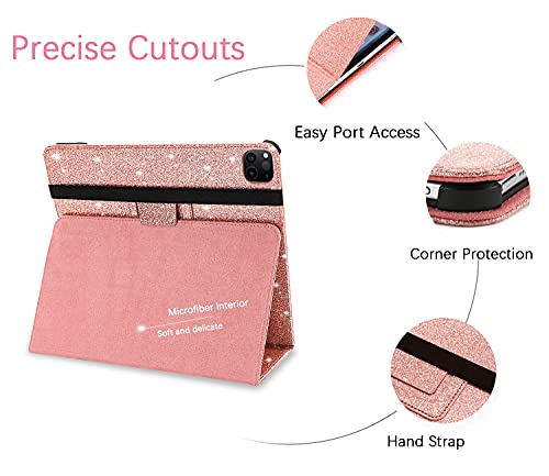 FSCOVER Custodia per iPad PRO 12.9" 2020, Smart Cover Protettiva Case Ultra Sottile e Leggero Glitter con Auto Sveglia/Sonno per iPad PRO 12.9" 2020, Oro Rosa