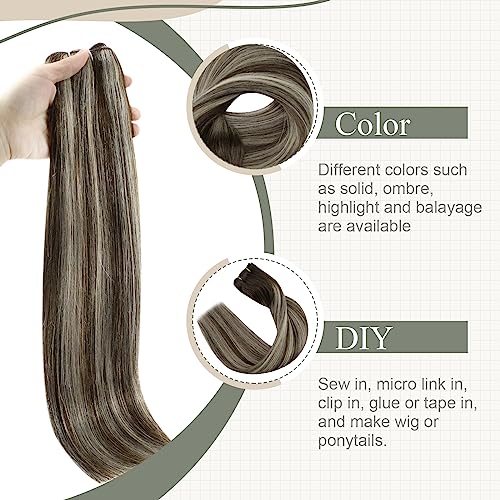 Fshine Extension Tessitura Capelli Veri Balayage Castano Scuro Misto A Biondo Platino Extension Cucite Capelli Brasiliani 100g 40CM Extension Bundles Human Hair #2/60/2