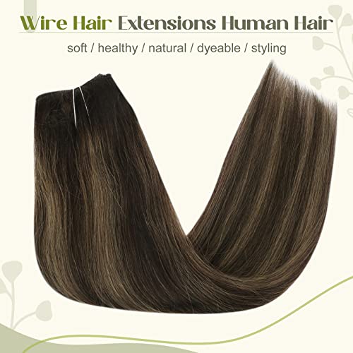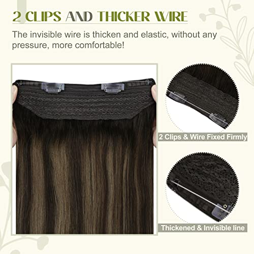 Fshine Filo Invisibile Extension Capelli Veri 70g Extension Capelli Veri Con Lisci 35CM Wire Secret Capelli Balayage Colore 2 Castano Scuro e 6 Castano Medio Con 2 Marrone Scuro Extensions Real Hair