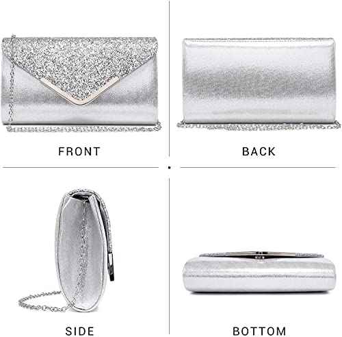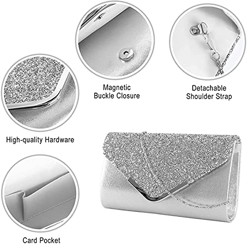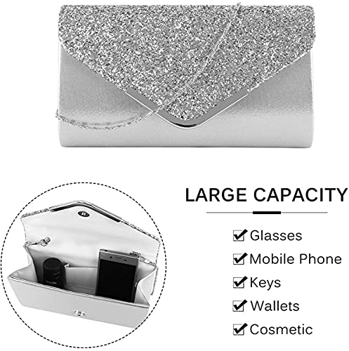 Fshyogasr Pochette da donna scintillante pochette da sposa da sera borsa a tracolla borsa da sposa per feste di ballo, A-argento.