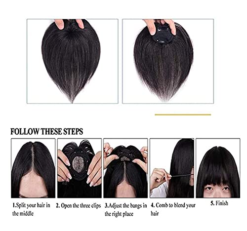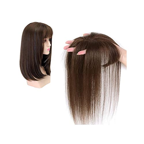 FSLEOVN Extension con clip in extension, parrucca da donna, invisibile, realistica, senza cuciture, con frange, 35 cm, marrone scuro), 1 pezzi