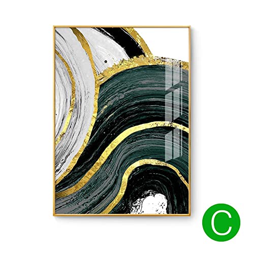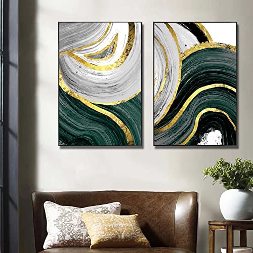 FSLEOVN Nordic - Quadro artistico su tela di marmo verde oro, astratto, trama dorata, senza cornice, decorazione per il soggiorno (60 x 90 cm)