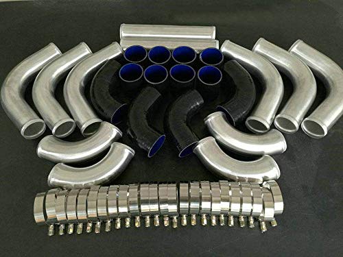 FSMOTO Nero 12PCS Tubo da 2,5"Tubo in alluminio universale Intercooler Turbo Tubo flessibile T-Clamp Manguera Tubo