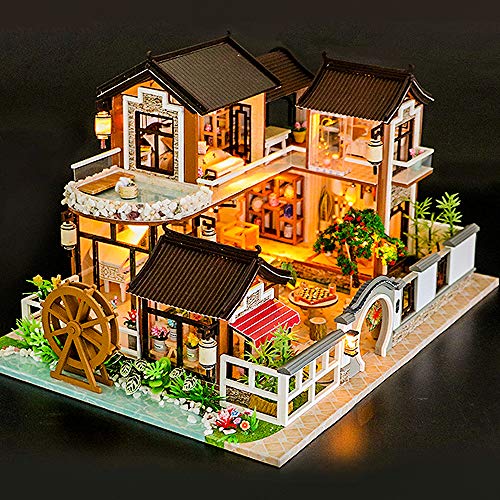 Fsolis Miniatura casa delle Bambole con mobili,7D Fai da Te Kit di Dollhouse di Legno Oltre e Il Regali creativi con luci a LED Regalo Creativo