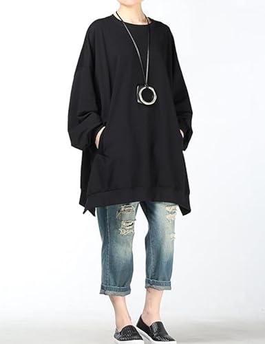FTCayanz Donna Primavera Girocollo Felpa Manica Lunga Pullover Top Nero L