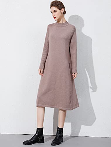 FTCayanz Vestito Donna Lungo Abiti Manica Lunga Abito Collo Alto Elegante Maglia Autunno Invernale Maglione Maxi Vestiti caffè L