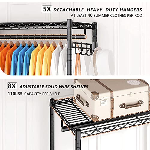 Completamente regolabile: questo appendiabiti stente ha 8 pannelli metallici e 5 aste sospese, sono tutti facilmente regolabili e staccabili dal sistema di bloccaggio a manicotto scorrevole, tutto quello che devi fare è assemblare le clip più in alto o in basso. Un perfetto appendiabiti fai da te per vestiti soddisfa tutte le tue esigenze. È ideale per appendere abiti, cappotti, abiti lunghi, giacche, pantaloni, camicie o altri vestiti pesanti.