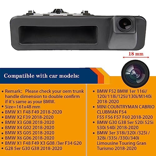Ftradios Telecamera Per Retromarcia Impermeabile 170 Grandangolo HD Immagine A Colori Per BMW X1 F48 F49 X3 G08 X4 G02 X5 G05 X6 G06 3er 318i/320i /325i /328i /335i /330i/340i 2018-2020