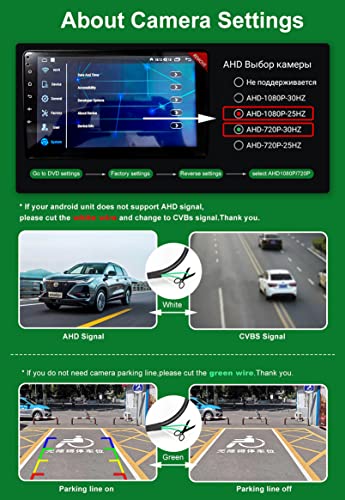 La telecamera supporta sia il segnale video AHD che CVBS, può funzionare sia con i monitor Android AHD che con tutti i monitor TFT CVBS.