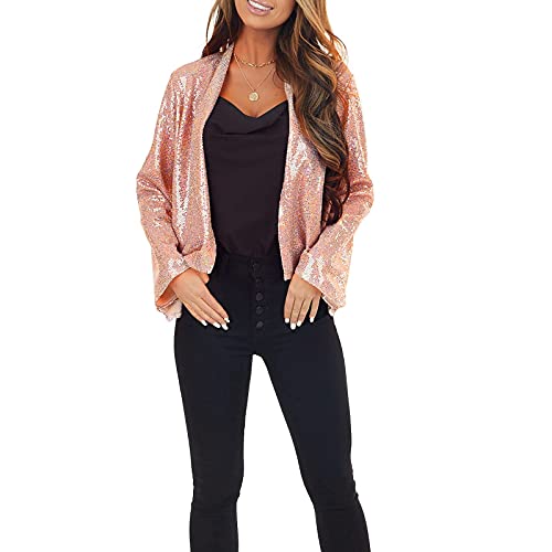 ☀☀ Caratteristiche: aperto davanti, elegante e casual, cardigan da donna, facile da abbinare a qualsiasi outfit. Indossare queste simpatiche giacche con paillettes top con top, canottiere, abiti e jeans preferiti in primavera, per un look elegante e alla moda