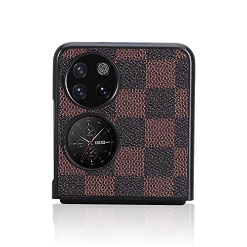 FTRONGRT Compatibile per Huawei P50 Pocket Cover, PC + Fondina a conchiglia all-inclusive in pelle, Anti-goccia, Adatta per custodia protettiva per Huawei P50 Pocket.Marrone