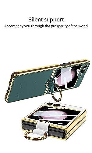 FTRONGRT Cover per Samsung Galaxy Z Flip 5, Cornice Placcatura in PC + Pelle, con cinghie, Fibbia ad Anello, Proteggi Schermo Posteriore, Antigraffio Custodia per Samsung Galaxy Z Flip 5 - Rosa