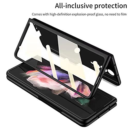 FTRONGRT Cover per Samsung Galaxy Z Fold 3 5G, Custodia per PC all-Inclusive + Design Combinato con Pellicola in Vetro temperato dello Schermo, Custodia per Samsung Galaxy Z Fold 3 5G.(Nero)