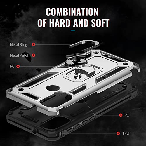 FTRONGRT Motorola Moto E20 Cover, Hybrid Dual Layer TPU+PC Custodia, Durevole Manicotto Protettivo Antiurto, con Supporto per Cellulare, per Motorola Moto E20-Argento