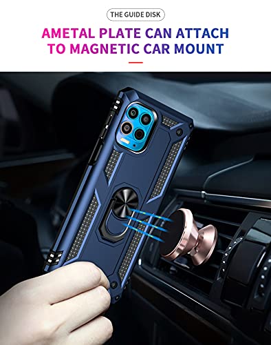 FTRONGRT Motorola Moto G100 Cover,Hybrid Dual Layer TPU+PC Custodia, Durevole Manicotto Protettivo Antiurto,con Supporto per Cellulare,per Motorola Moto G100-Blu