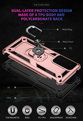 FTRONGRT Motorola Edge 20 PRO Cover, Hybrid Dual Layer TPU+PC Custodia, Durevole Manicotto Protettivo Antiurto, con Supporto per Cellulare, per Motorola Edge 20 PRO-Oro Rosa