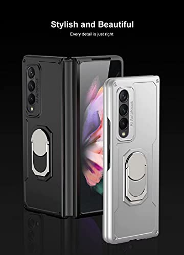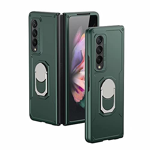 FTRONGRT Samsung Galaxy Z Fold 3 Cover,Hybrid Dual Layer TPU+PC Custodia, Durevole Manicotto Protettivo Antiurto,con Supporto per Cellulare,per Samsung Galaxy Z Fold 3-Verde Scuro
