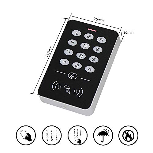 FTSTech Tastiera di Controllo Accessi RFID in Plastica Stand-alone,Supporto 1000 Utenti, uso Porta Singola, con 10 Telecomandi ID blu TK4100 EM (A1)