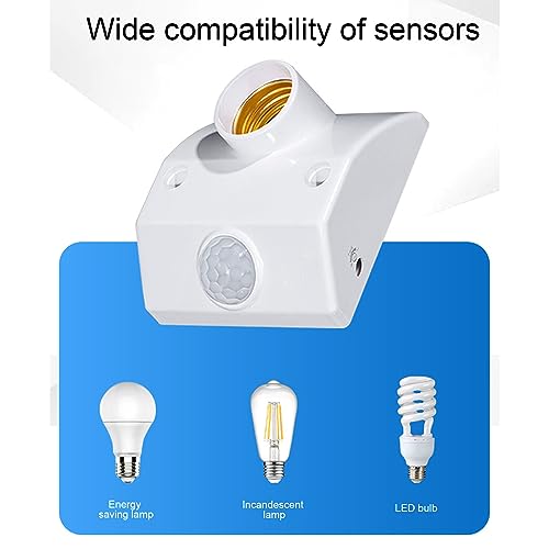 FTVOGUE Accensione Regolabile di Notte, Controllo della Luce, Presa Luce con Sensore di Movimento PIR, Base Lampadina E27, per Garage, Cantina, Portico, Lavanderia
