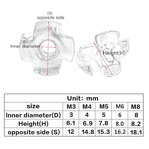 FTVOGUE Set di dadi assortiti, Viti Viti per legno a quattro punte in acciaio al carbonio con rivestimento in zinco per mobili, M8, 50 pezzi