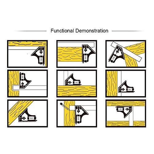Campo di misura di 0~300mm, è regolabile per misurare l'angolo retto, l'angolo di 45°, la pendenza di 45°, la lunghezza, la profondità e la larghezza.