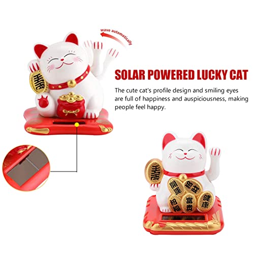 FTVOGUE Feng Shui energia solare Carino agitando denaro Gatto Buona Fortuna Ricchezza Fortuna accogliente Casa Gatti Display Auto decorazione (Bianco)