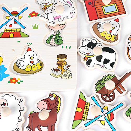 FTVOGUE Number Animal Fruit Wooden Cognitive Knob Puzzle Bambini Educational giocattolo educativo con impugnatura(animal)
