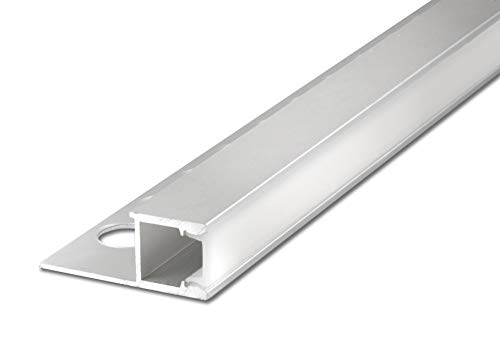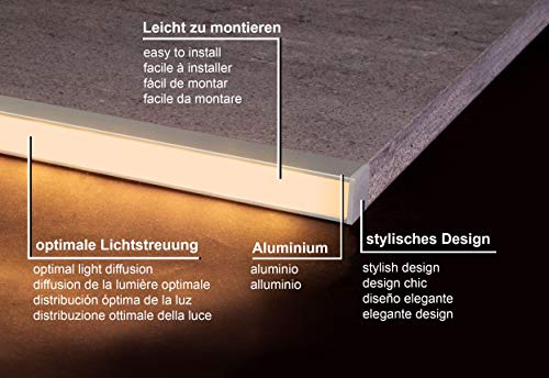 2,5 m FUCHS Pista per piastrelle a LED 12 mm quadrato profili speculare Striscia LED per strisce LED, in acciaio inox alluminio anodizzato argento incl. copertura (bianco latte)