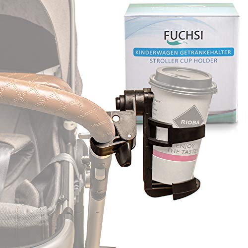 FUCHSI Portabevande per passeggino, supporto per bevande, girevole a 360 gradi, universale, per biberon, colore nero