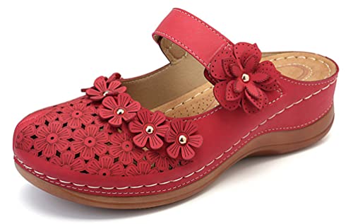 Fudaolee Mules Donna Zoccoli Pantofole in Pelle PU Sandali Estivi Zeppa Eleganti Ciabatte con Tacco e Plateau Comode Scarpe Ortopediche Ricamati Senza Schienale Pantofale con Punta Tondo Vintage