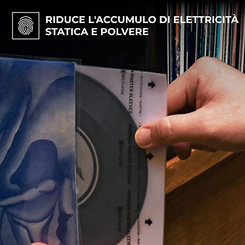 Riduce l'elettricità statica - Le nostre guaine protezione vinile sono in polietilene protettivo a 3 strati su un lato e di carta di riso da archivio sull'altro. La tecnologia a ioni negativi riduce l'attrito e respinge la polvere per una protezione "long play".