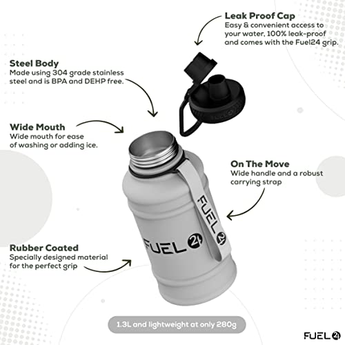 Fuel24 Brocca in acciaio inox - Borraccia da 1,3 o 2,2 litri, extra forte, senza BPA, a prova di perdite, grande bottiglia sportiva da palestra da 1,3 l, 2,2 l, in metallo, colori disponibili
