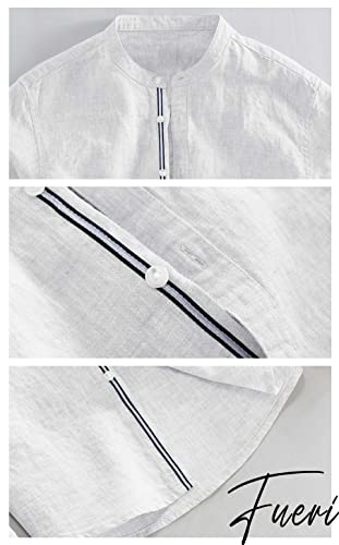 FUERI Camicia da uomo a maniche lunghe, in cotone e lino, stile casual, con bottoni a fascia, leggera, estiva, A-Bianco, 3XL