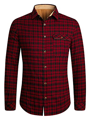 FUERI - Camicia da uomo a quadri in flanella termica, 100% cotone, a maniche lunghe, invernale, per il tempo libero, per la falegnameria, da uomo, E-rosso, M