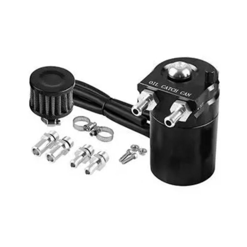 Oil Catch traps oil and moisture in blow-by gas, causing carbon and sludge build-up in the intake system and engine. Turbocharged motors are hurting car performance All oil vapours expelled before even in bad driving conditions Also keeps the engine clean Catch can prevent the intake system Dirt and oil that gets inside the engine increases horsepower and prolongs engine life Includes hoses, clamps and mounting brackets Made of aluminum, it is lightweight and durable. Packing size: 22*11*9cm Material: Aluminum Alloy New Aluminium Oil Tank with Baffle Reservoir / Oil Tank with Filter Universal