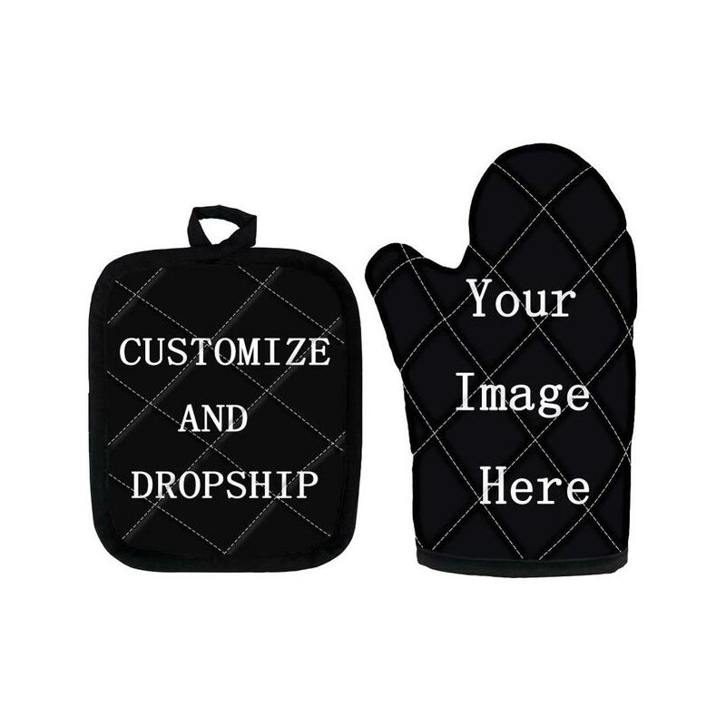 Fuienko - Guanti da forno cottura stampe floreali di maiale guanti da cucina a microonde isolamento in poliestere e guanti antiscottatura tappetino per presine,customize-D19
