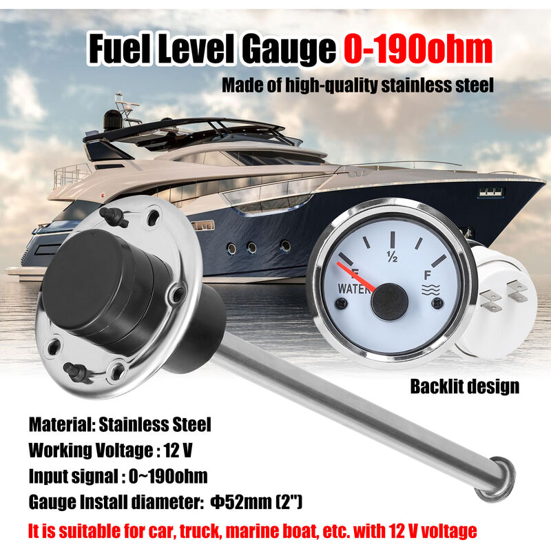 Caratteristiche:Prodotto nuovo di zecca 100% con qualità garantita.Realizzato in acciaio inossidabile di alta qualità, è resistente alla corrosione e non facile da arrugginire.Design retroilluminato per una visione chiara anche di notte o in condizioni di scarsa illuminazione.Diametro di installazione standard da 52mm, facile da installare e utilizzare.È adatto per auto, camion, barche marine, ecc. con tensione 12 V.Specifiche tecniche:Materiale: Acciaio InossidabileTensione di lavoro: 12 VSegnale di ingresso: 0 ~ 190ohmDiametro di installazione del calibro: 0, 52mm (2 ")Lunghezza sensore: 200mm / 215mm (opzionale)Peso articolo: 224g/ 7.9ozDimensioni del pacchetto: 240*90*85mm/ 9.4*3.5 * 3.3inPeso del pacchetto: 280g/ 9.9ozLista di imballaggio:1 * Indicatore Livello carburante1 * sensore livello carburante Trasporto libero: 1. Garanzia di spedire le merci entro 24-72 ore dopo la conferma del pagamento eccetto le vacanze.2.We ship by China post,HKpost EMS,DHL,Fedex, secondo la tua