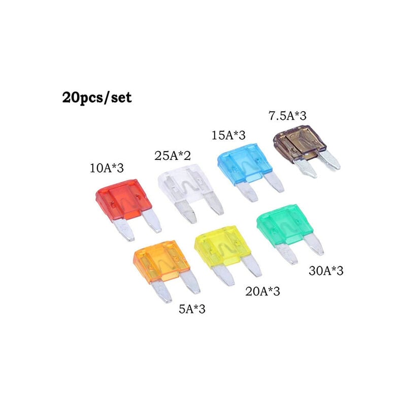 Nuovo 20 pz/set Mini Lama Fusibili Auto Camion Auto Fuse AssortimentoKit Set 5/7.5/10/15/20/25/30A Fusibili MIni Fusibili "Descrizione:Sacchetto di 20 Misto Amp Lama FusibiliVarietà di usi automobilisticiUsato in: Auto, Furgoni, VEICOLI COMMERCIALI PESANTI 's, Agricolo, Tosaerba, Moto, Autobus, Caravan, applicazioni di camper e molti altri a bassa tensione.Tensione nominale 32V DC.Contiene i seguenti amperaggio s ':3pcs x 5A3pcs x 7.5A3pcs x 10A3pcs x 15A3pcs x 20A2pcs x 25A3pcs x 30ACornici E Articoli Da Esposizione Incluso:20pcs X Misto Amp Fusibili Lama"