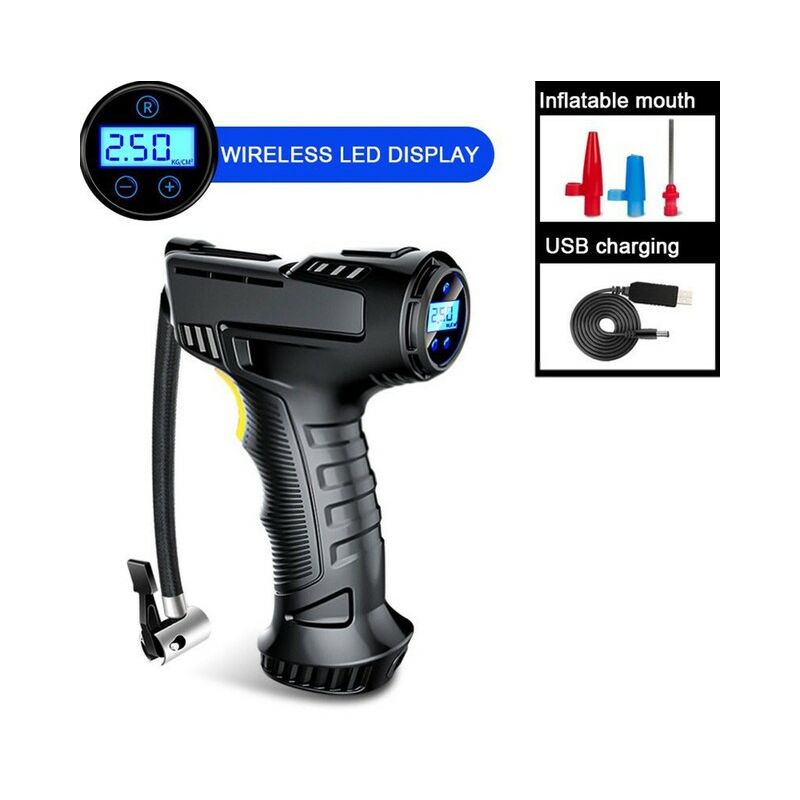 Caratteristiche: Schermo digitale e funzione di arresto automatico Il grande blu retroilluminazione dello schermo digitale è conveniente per l'utente di impostare la pressione preset. Il pneumatico auto pumper smetterà automaticamente di funzionare quando la pressione della pressione dei pneumatici raggiunge il preset. Tester di pressione di funzione Aprire la macchina pneumatico pumper e collegare pumper con l'ugello, lo schermo mostrerà la pressione dei pneumatici a destra, che ti permette di testare la pressione dei pneumatici in tempo reale comodamente. Ha condotto la luce La luce del led design lo rende comodo per gonfiare il pneumatico in condizioni di scarsa illuminazione, perfetto per la notte uso. Veloce ed efficiente di disegno 120w grande disegno di potere ti porta di ricarica rapida esperienza con solo 35s tempo di ricarica. Il metallo tubo interno può ha eccellente mute e buona funzione di dissipazione, fornendo stabile e veloce servizio di gonfiaggio. Disegno