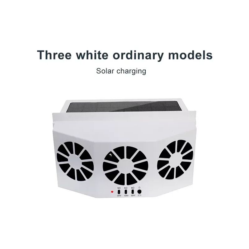 Solar/USB Dual Charging Vehicle Cooling Tool Car Exhaust Fan Vehicle Air Circulation Smoke Exhaust Fan Car Ventilation Fan Introduction The weight of the double outlet is 580g, built-in 2 nickel-metal hydride batteries/800mAh each, size 17.5*14.5*8cm The ordinary model with three outlets weighs 700g, built-in 2 nickel-metal hydride batteries/each 2400mAh, size 22*6.5*11cmThe three-outlet upgrade has a weight of 700g, built-in 2 nickel-metal hydride batteries/each 800mAh, size 24*6*13cm(The above weight is the weight with packaging, color box)Delivery: Two-port, three-port upgrade models with USB cable, rubber strips, English manual (three-port ordinary models are shipped without USB)Charging mode: dual-port, three-port upgraded version can be charged by USB or solar, three-port ordinary models can only be charged by solarMaterial: ABSSolar power: 1.5W for two ports, 1.5W for three normal models, and 5W for three upgraded modelsSolar location: outside the car windowCharging indicator