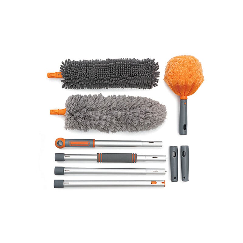 Dimensioni Nota: Come la strumenti e metodi di misurazione sono diversi, E 'normale condizione che se l'errore è di 1-2cm, specifico per prevalere in natura. 1. Collegare aste in lega di alluminio 1 e 22. Collegare aste in lega di alluminio 2 e 33. Collegare aste in lega di alluminio 3 e 44.4. Inserire ogni testa di pulizia in adattatore5. Allineare il palo con la testa di pulizia desiderato6. Inserire la parte inferiore e completare l'installazione