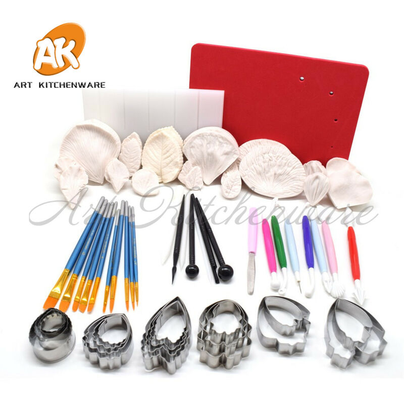 Tra cui: 1. 1pcs groove bordo della torta: La scanalatura è per fare (del fondente, pasta di gomma, di zucchero), Fiore,Vena di foglia, e la scheda può anche per l'essiccazione. 2. 1pcs Torta di Schiuma Pad: Il pad è più morbido di scanalatura bordo, È possibile premere petali su di esso. 3. 1set di disegno della torta: non solo essere utilizzato per la colorazione torte, fiori, foglie, ma anche per la pittura, il trucco. 4. 1set diPenna di sfera-peen (BlacK nella foto): Per fare la trama di fiori e foglie. 5. 1set di ha la penna (bianco nella foto):Per fare la trama di fiori e foglie. 6. 1set di strumenti di modellazione: 8 diversi a forma di penne. 7. 5 set di frese in acciaio inox: Per Il taglio di forma di foglie. 8. 12 accoppiamenti del silicone veiners: Più Facile da fare le foglie. Colore: casuale