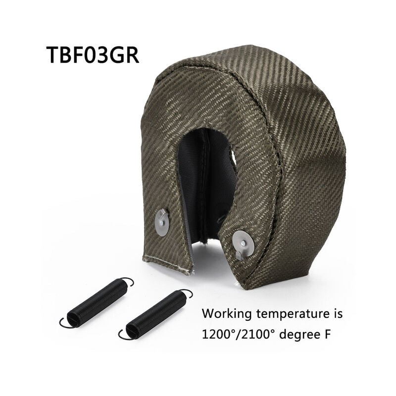 47662 Turbo Coperta Fuienko - 100% Full TITANIO T3 turbo coperta turbo scudo termico fit: t2 t25 t28 gt28 gt30 gt35 e la maggior parte dei t3 turbo Fuienko-TBF03 1303-2T: Per t2, t25, t28, gt28, gt30, gt35, e la maggior parte dei t3 turbo charger. Temperatura di funzionamento è di 1200 gradi F In grado di sopportare diretta di calore fino a 1400 gradi F Circonferenza esterna: 19" Larghezza interna: circa 2-1/2" Materiale: 100% full Titanio Colore: Titanio In Fibra di TBF03GR: Per t2, t25, t28, gt28, gt30, gt35, E la maggior parte turbina t3 caricatore custodia turbo. Temperatura di esercizio è di 1200 °/2100 gradi FMateriale: TITANIO Colore: Titanio. Circonferenza esterna: 19" Larghezza interna: circa 2-1/2" TBF03G: Per t2, t25, t28, gt28, gt30, gt35, e la maggior parte dei t3 turbo charger. Temperatura di esercizio è di 1000 °/1800 gradi F Materiale: TITANIO Colore: Titanio. Circonferenza esterna: 19" Larghezza interna: circa 2-1/2" CARATTERISTICA: Il Titanium Turbo