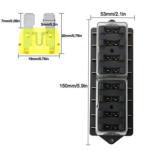 ✪ Acquista un portafusibili a lama a 8 vie di alta qualità, puoi ottenere libero 10Pcs di fusibili standard di medie dimensioni ( Incluso il più comune AMP: 2A / 3A / 5A / 7,5A / 10A / 15A / 20A / 25A / 30A / 35A), Risparmia tempo e fatica, non è necessario acquistare e accedere.