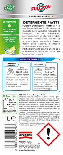 FULCRON Detergente Piatti Concentrato Per Lavaggio Manuale, Azione Altamente Sgrassante, Detersivo Piatti Profumo Agrumi, 1 L