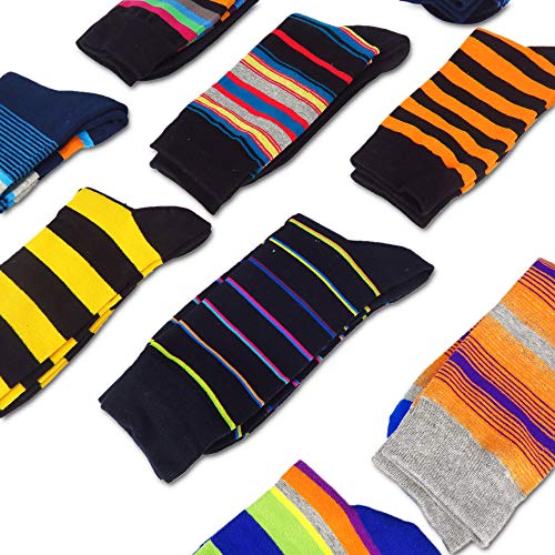 FULIER Uomo Calzini Pacchi Cotone Design Colorato Confortevole Vestito Vitello Calzini UK 6-13 EUR 39-47 (10 Pack - Stripe 4)