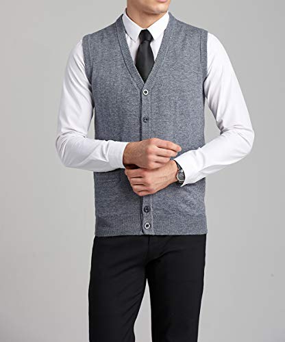 FULIER Gilet Senza Maniche in Lana con Scollo a V da Uomo Gilet Classico in Maglia con Cardigan (XL, Grigio)