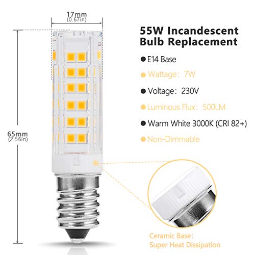 Fulighture Lampadina LED E14,7W E14 Sezione lunga Small Edison Screw Equivalente a 55W, 500Lm Non Dimmerabile,Luce Bianca Calda 3000K,Pacco da 2 [Classe di efficienza energetica A+]